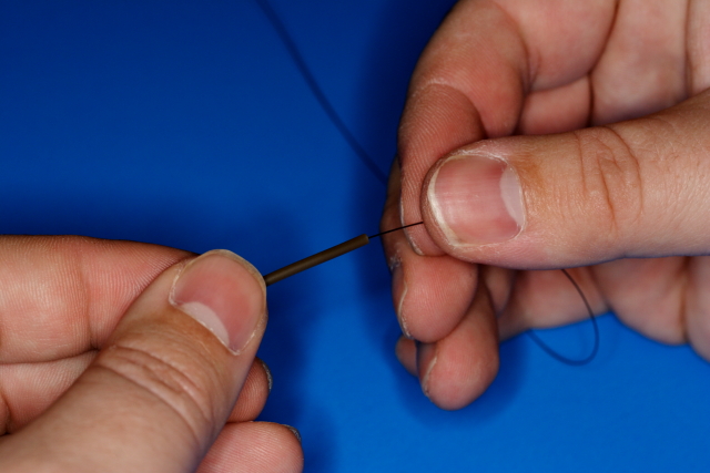 Note that the line I am using is 17lb mainline and it threads through the tubing with ease so I doubt if you will have any issues given that this mainline is so limp I have had issues i the past with tubing from other manufacturers. Once the tubing is threaded, thread on the lead clip ( make sure that you put it on the right way around 🙂 ) then tie on the swivel with you favourite knot, I have used a Trilene knot which I blogged about recently like so :
