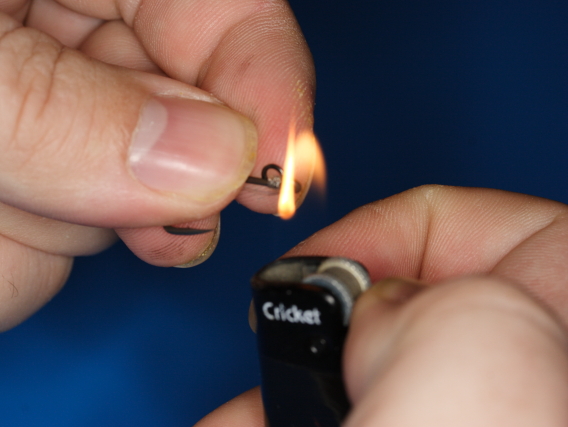 As the line cools you can use the back of the lighter to carefully flatten the blob, be careful the line is hot and will stick to flesh if you use your finger rather than the back of the lighter.