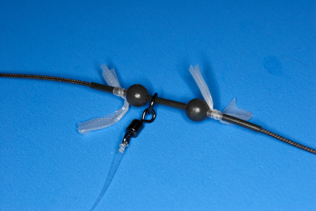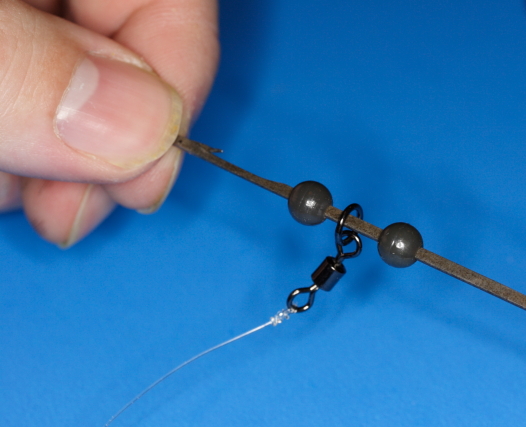 Thread down onto the leadcore and, after attaching a bait you are done ! it is that simple. Should you have an issue with the beads moving on a powerful cast of if you are using a PVA nugget or large bait then you can fix them using a length of PVA tape. This will dissolve in the water leaving the rig totally safe ie