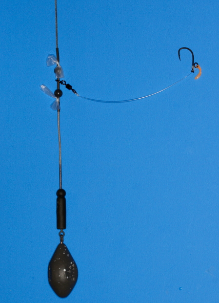 Effectively it is a standard helicopter rig with a very short hook link and a pop-up. It is worth pointing out that the rig has to be fished with a popup if the anti “chod” capabilities are to be realised else with a bottom bait the bait may lie in the detritus that you are trying to avoid.  The anti silt capabilities are also helped by virtue of the helicopter rig in that you can fish the rig as far from the lead as you desire and if you add on a Solar bag clip with an in-line lead you can even fish a bag of freebies close by.