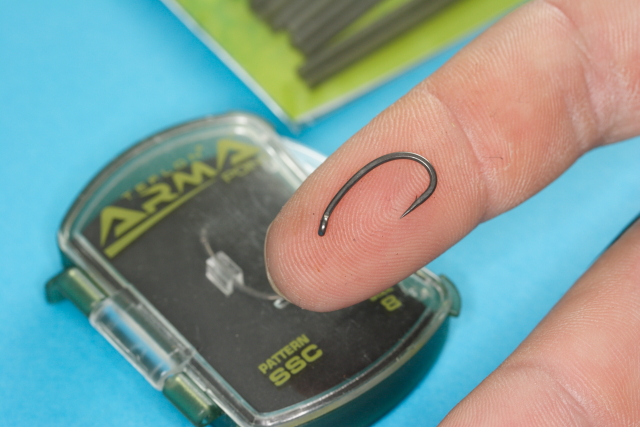Next take your hook, I find a curved shank hook works best for this rig so I will be showing this rig with a Fox SSC which is not too extreme as some are but is just curved enough to make the mechanics of the rig work.