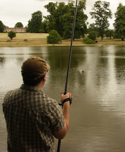 The next part is just like a normal spod, except you have not had to pack the back of it with ground bait to stop annoying spod spill. I suggest a 5lb+ test curve spod rod as this thing is really heavy when you have it fully loaded far more than a Fox TB1 spod for example. I used my standard 20lb bread straight through on a Fox warrior 5.5lb TC spod rod and a Diawa Emblem Spod reel and had no issues at all however if I was going for massive distance I would be tempted to go for a 50lb arma cord leader or similar to stop any accidents. Of course as with any spodding / braid work a finger stall is essential other wise you will be going to casualty with one finger missing. I noticed immediately that this thing flies like a missile seemingly unaffected by wind and I had to tone down the amount of power I normally put in to a cast and none of the “corkscrewing ” that can occur with normal spods.