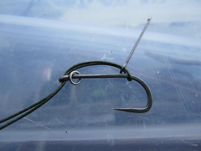 I know that I said that I hated tying pop-ups onto rigs for chod rigs etc but I have had a change of heart. No I am not about to knock spikers but i have seen another way that actually seems to work. In the past I was always shown that the way to attach popups ( when using floss) was to use a complicated knot based on a grinner which worked about 50% of the time and was a nightmare to tie when you were tired or it was dark or it was cold, or in fact any time that was not at home, in the warm with good lighting.